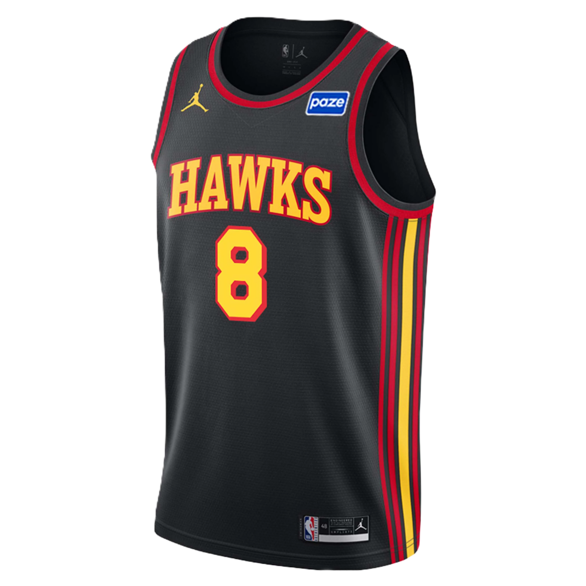 Crafted in authoritative Infinity Black, this jersey is built for performance and style. The "HAWKS" wordmark, often in bold Legacy Yellow with Torch Red accents, is aggressive and modern, perfectly matching Porziņģis’s sleek, international game. The sharp angles and contrasting colors reflect his versatile skill set.