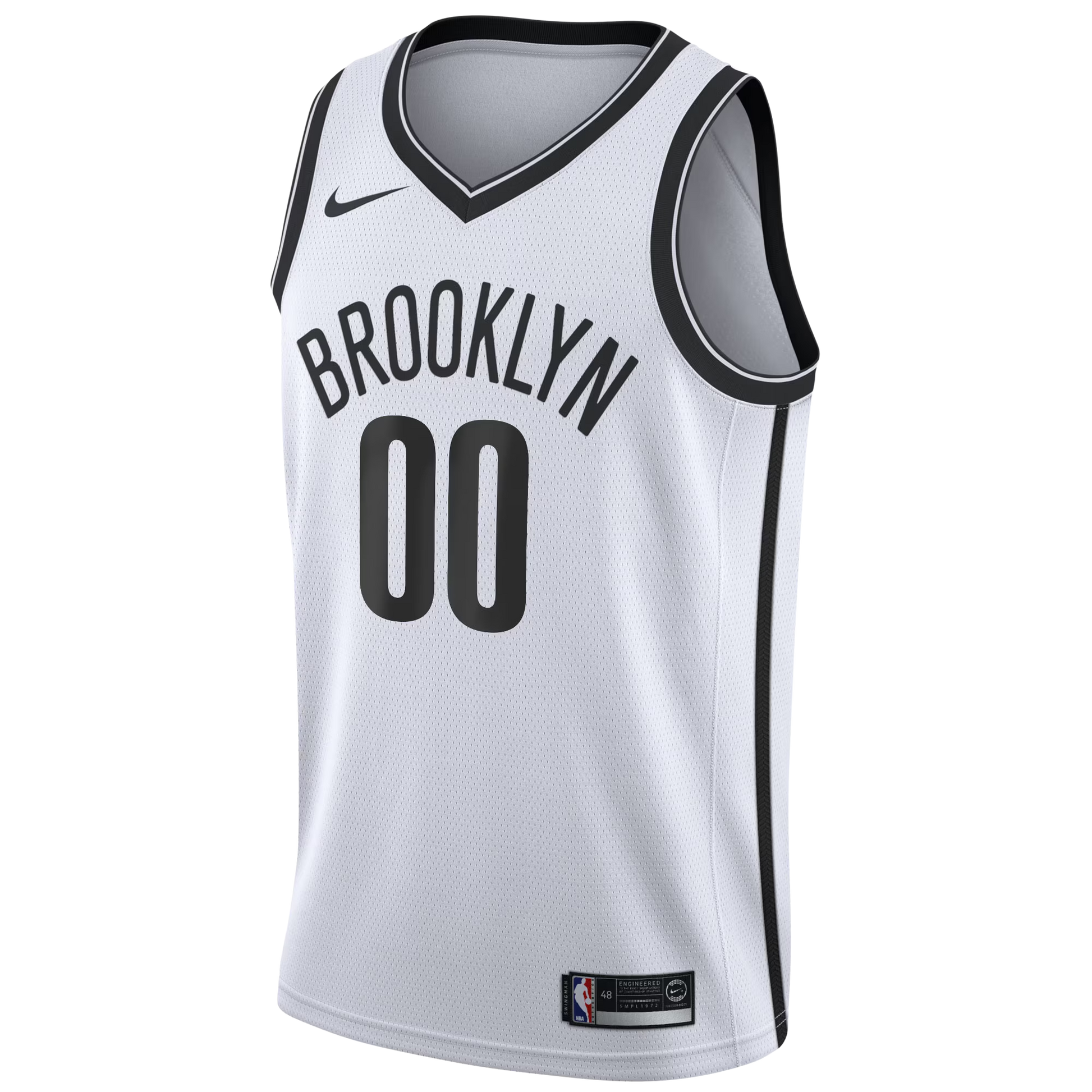 The jersey features a bright, clean White base, ensuring your customized name and number stand out boldly in the traditional Black lettering. The "BROOKLYN" wordmark is crisp and clear across the chest. The side panels often feature the subtle black herringbone pattern, a sophisticated nod to the home court design.