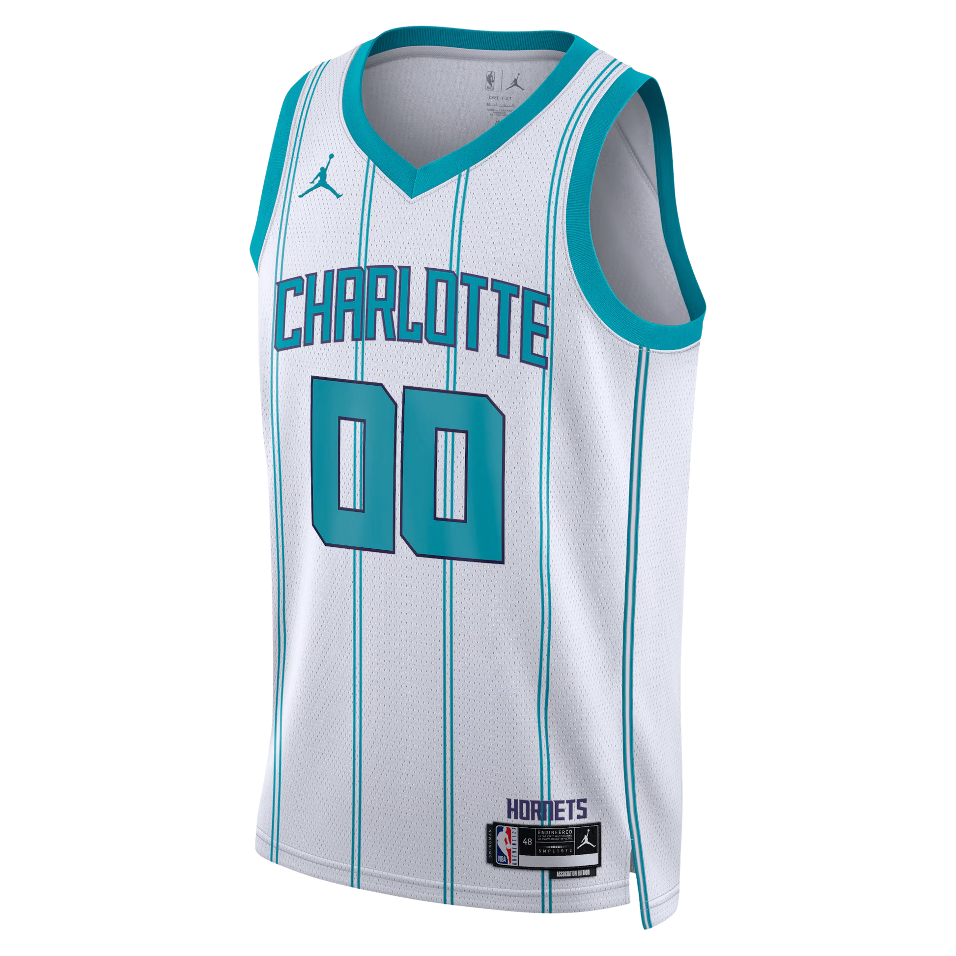 Rock the Hornets' iconic look with this White Association Jersey. Customize it with your name and number in bold Teal and Purple lettering that pops against the clean white base. Classic double pinstripes along the trim keep that signature Hornets swagger alive. Make it yours.