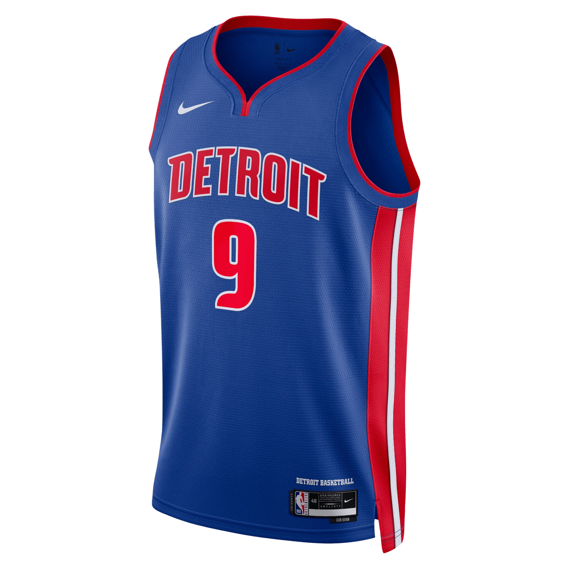 Rock the Motor City's boldest look with this Detroit Pistons Icon Jersey featuring Ausar Thompson's #9. Dressed in signature Pistons Blue with striking Red and White lettering, this jersey captures the franchise's fierce identity. Clean lines and classic trim deliver an authentic on-court aesthetic that demands attention.