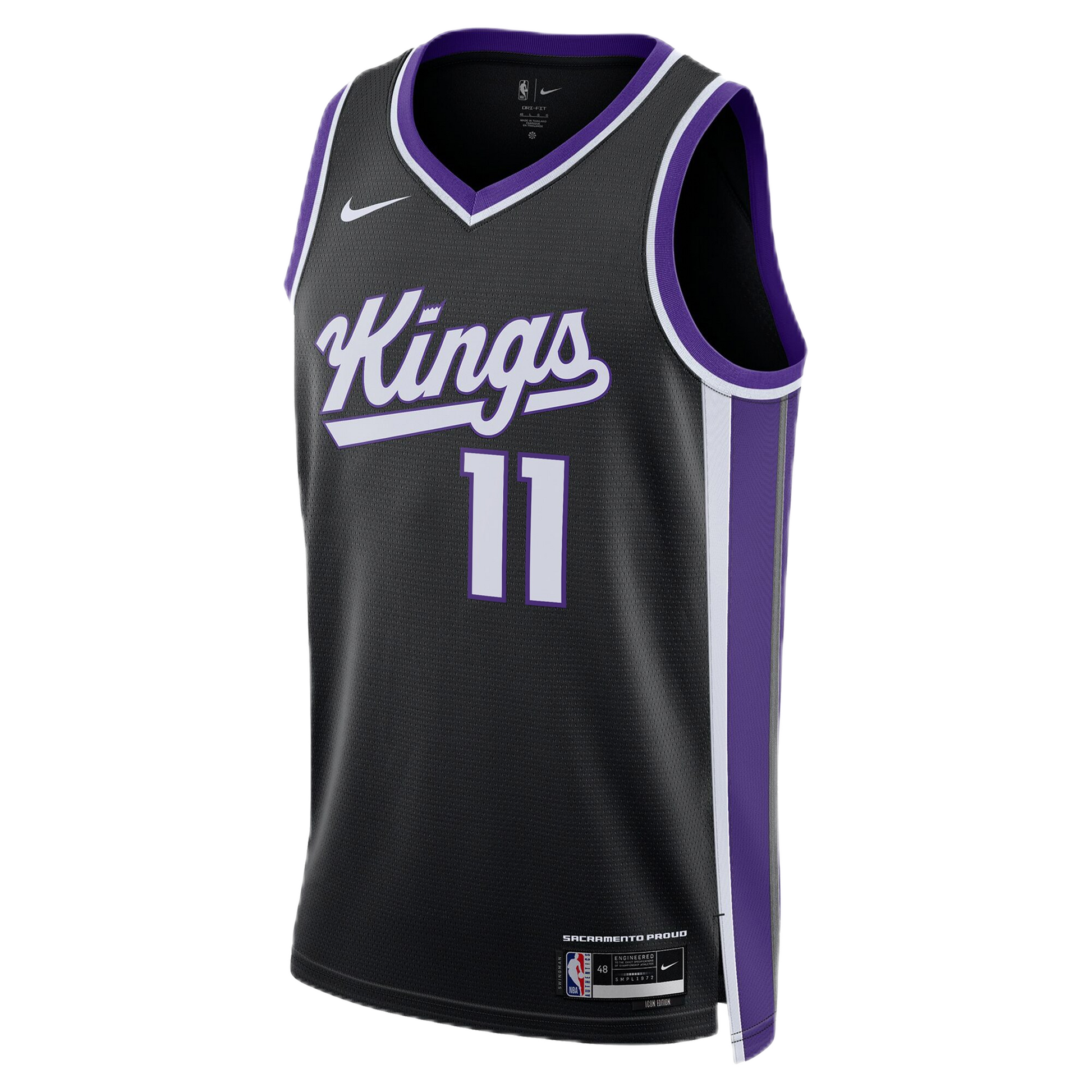 This is the jersey of commitment. The Black Icon Edition is the Sacramento Kings' classic uniform, standing for the core values and history of the franchise. It’s the color worn for road battles, and it’s the perfect uniform to represent the relentless, foundational game of Domantas Sabonis.