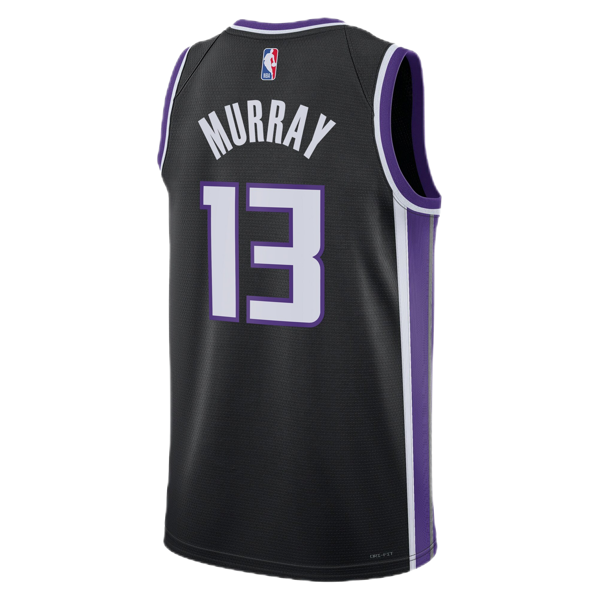 This jersey is pure, essential Kings basketball. The deep black base provides a striking contrast for the vibrant purple and clean white lettering of the team name and Murray's number. The classic cut and the heat-applied player details create a premium feel that is ready for game days and everyday wear. It’s a clean, formidable design that is instantly recognizable and always intimidating to the opposition.