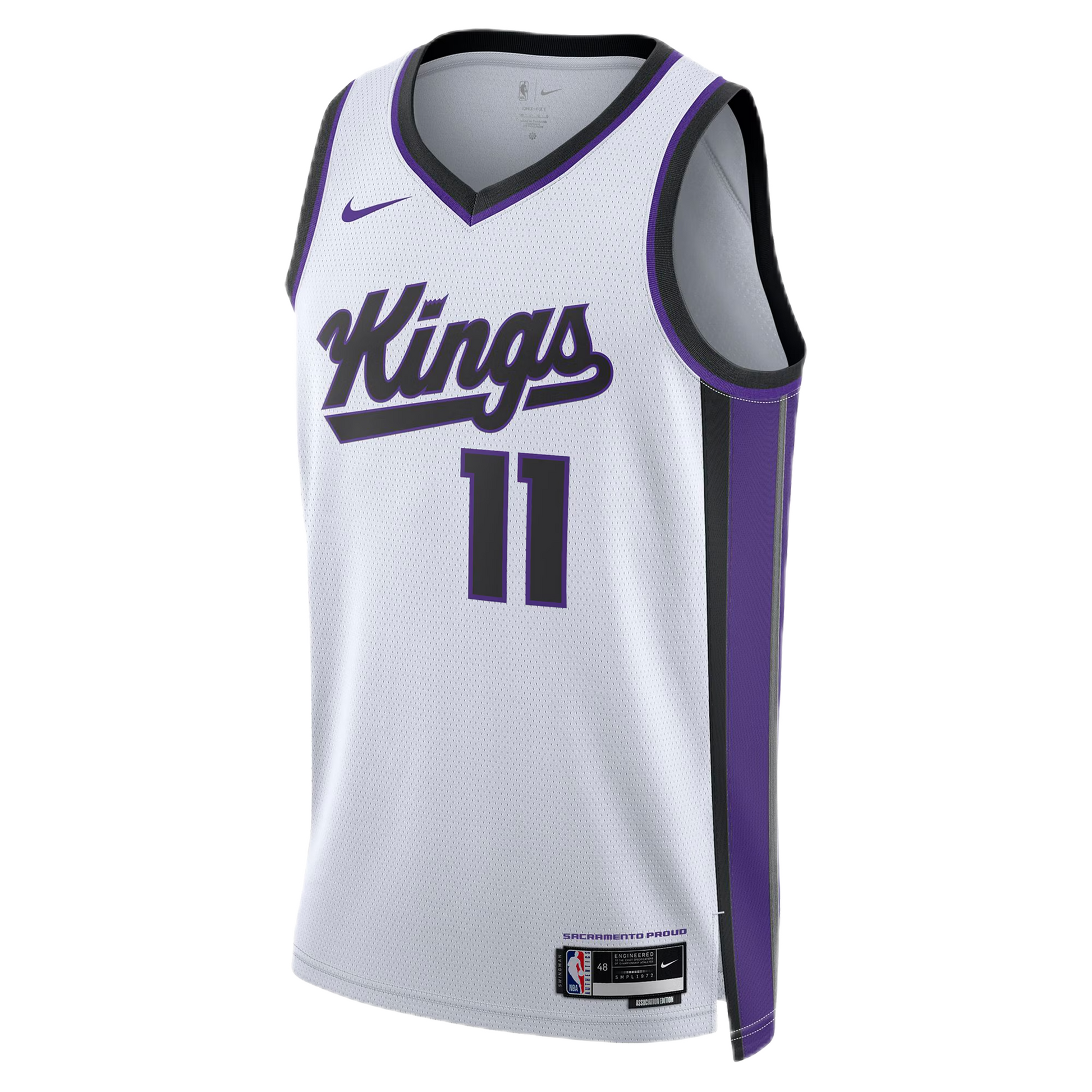 The brilliant white primary color is trimmed with strong purple and black accents, making the new, modernized script wordmark pop across the chest. Sabonis's #11 looks crisp and clean, reflecting the pure intensity he brings to every home game. Crafted with meticulous attention to detail, this jersey offers exceptional comfort, durability, and breathability for any fan.